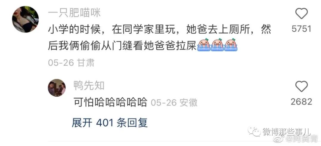 :去朋友家睡,进门听见她爸妈…的声音,声音巨大,我俩震惊得说不出话,我朋友愣了几秒把我推进卧室在门口喊了声妈,里面没听见。我都感觉我朋友快哭了,我俩就这么呆坐在卧室听了好久,完了她爸裹个衣服出来发现我俩在家,一句话没说…第二天吃饭她爸不在家。我们三个人沉默着吃完了那顿饭