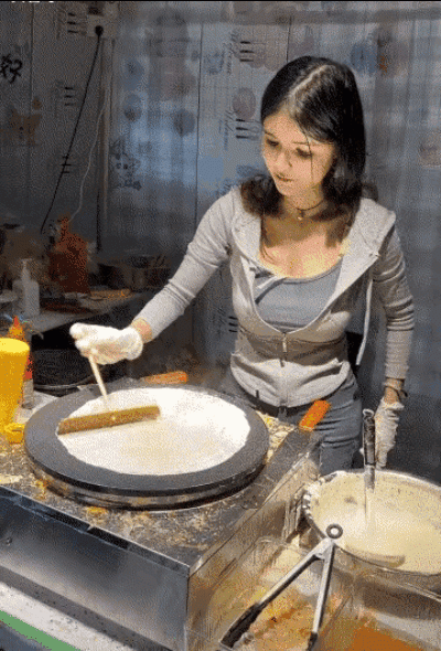 :有一说一,她摊煎饼有段时间了,我不相信她,但我相信劳动也许可以改变一个人。