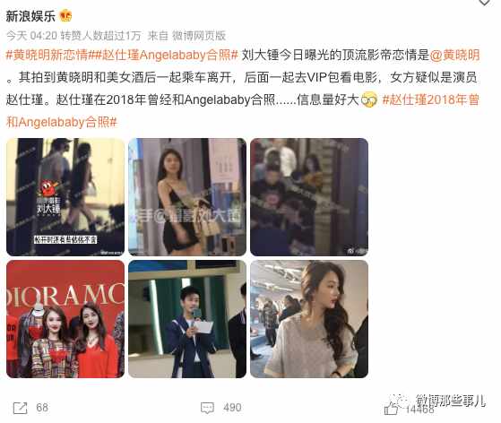 6月2日,有八卦媒体拍到@angelababy 剧组的房车上有一帅哥,两人一起和朋友聚会,结束后单独去吃火锅,最后一同回家。次日,baby出门工作,男子与她的司机共进午餐后再次回到家中,疑似恋情曝光。八卦媒体还称男子是圈外人,他参加过baby的生日派对。作为Angelababy 的前夫黄晓明,也在昨天被曝出“有新欢了”很巧的是晓明哥两任绯闻对象都和鼻姐合照过