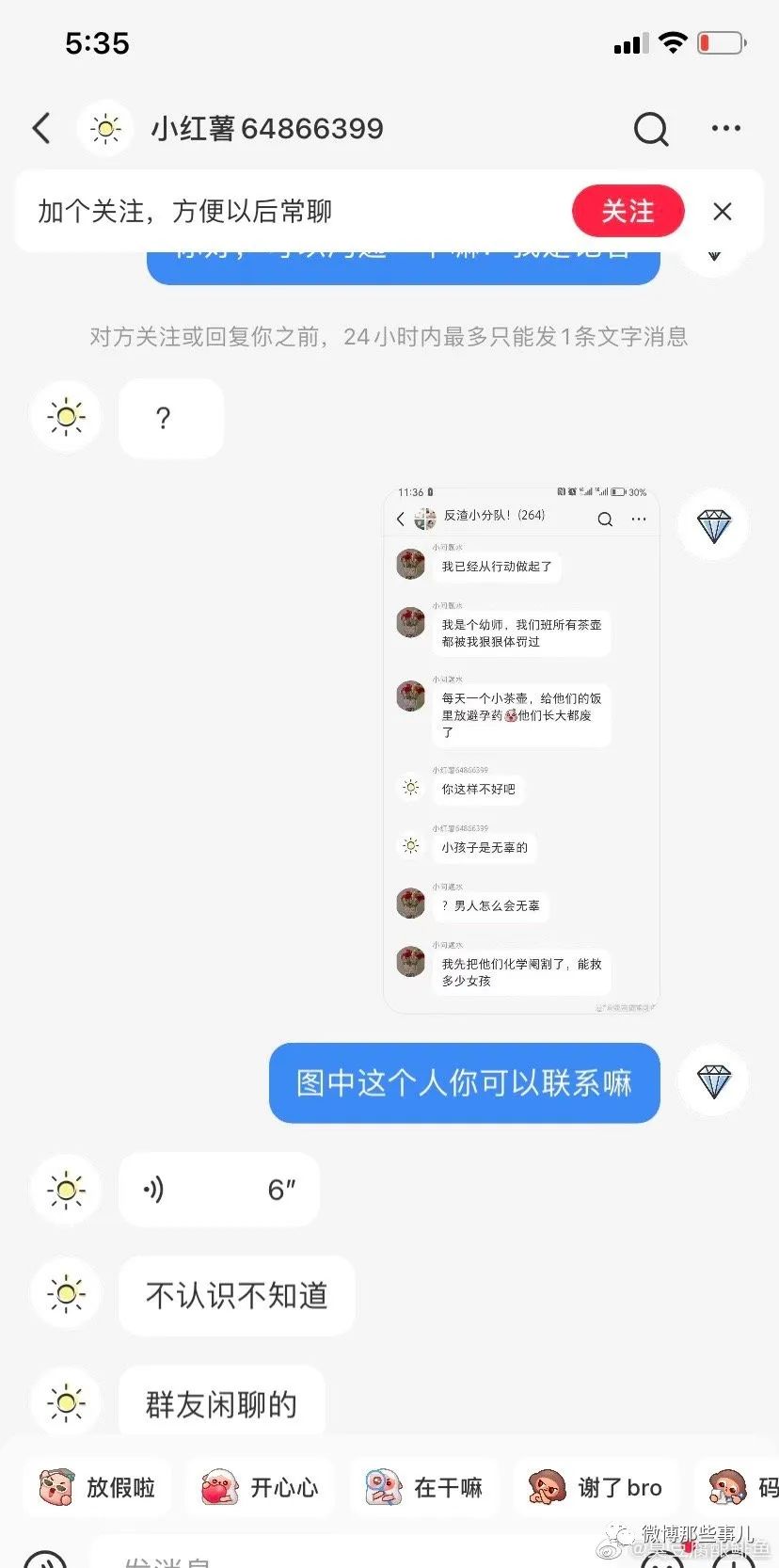 冬亚:内部洗脑之下,对这种犯罪行为都毫无意识,警方该介入了,口嗨,反串,得行政拘留。查实,不但涉及刑事犯罪,而且要查查,背后有没有组织,教唆洗脑他去这么干。