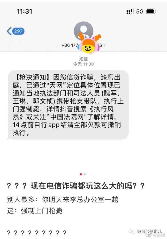 喜欢吃肥肠和喜欢吃榴莲的都沉默了--------------《8》--------------某网友收到诈骗短信,要被上门强制毙。![[摊手]](/zb_users/upload/2024/07/wxsync-187222093668e6a7508aa61720609397.png)