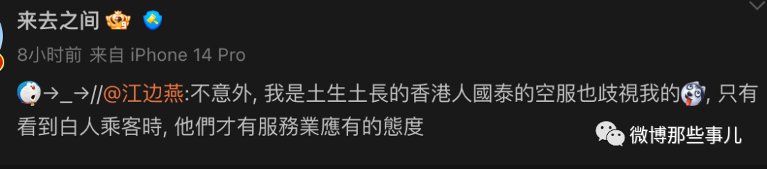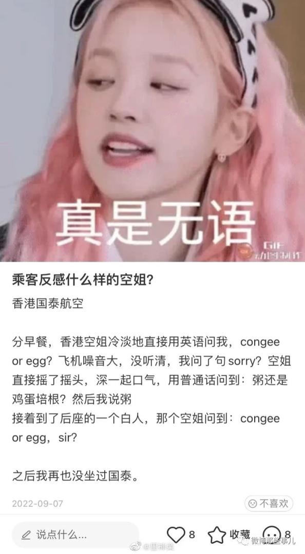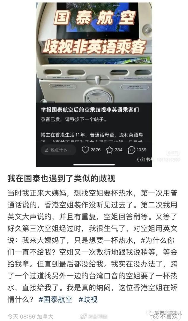 国泰空姐歧视非英语乘客事件,少见的陆港台三地网友手牵手吐槽国泰! 伦理电影 2024-10-23 11:20:22 247 0 国泰空乘以英文明确表示,如果乘客不能用英语沟通,就不能获得毛毯服务。目前,5月23日下午,国泰航空就此事致歉称,已暂停有关人员飞行任务并展开调查。后来,舆论越来越大,国泰航空对三位涉事的空中服务员予以解聘。同日,退钱哥发布微博称与国泰航空一空乘交流时,对方用英语回复听不懂中文。对此,退钱哥并未要求对方道歉,他表示当时以为该空乘确实听不懂中文。小红薯上纷纷吐槽在国泰遭遇到的歧视经历看来这是国泰的传统台湾人也是相同经历,并且坚信:指望他们改是不可能的,殖性是娘胎里带来的,改是死都不会改的。国泰对香港人也这样,只有看到白人乘客,才有服务业应有的态度还是马来西亚网友干得漂亮! 2049年的世界:国泰航空:你看看你看看,我不是专门针对你们内地人的吧,我是公平的歧视你们所有中国人的。听听听听听听-:少见的陆港台三地网友手牵手道然云起:就Tm飞机上一端盘子的,还端出优越感了 伦理片伦理电影伦理片网站韩国伦理片日本伦理片韩国伦理电影日本伦理电影 << 网友反映遭到国泰航空空姐歧视,多次索要毛毯被拒,日本人一要就给 网传华晨宇做给自己和张碧晨的孩子做了两次亲子鉴定 >> 您可以还会对下面的文章感兴趣: 90后父母专治各种不服,再甜不能甜孩子,再苦不能苦自己 大厂为了防厕所摸鱼有多拼,为此还单独研发了一个系统? 宝马mini冰淇淋事件崇洋媚外引发网友众怒,宝马一招化解:改发钥匙扣! 【今日爆笑动态图】刚试了试,被人追了二里地 每棵树好像都有自己的想法,学一点树语,轻松读懂树木! 淄博烧烤风波,男子凌晨三点排队取得号,排到座位后,被一位女士占了 你们可能想象不到,这段视频在国外非常火,老外:中国功夫! 编剧史航被至少12名女性控性骚扰,史航称和几个当事人有不同程度交往! 云南抹黑节,把路人抹黑代表祝福,洗了一百个孩子没洗到自家孩子 【今日爆笑大集合】兄弟们,一个相当炸裂的故事,不是一家人不进一家门 相关文章 伦理电影网会员限时免费开放 伦理电影免费下载最新网址 90后父母专治各种不服,再甜不能甜孩子,再苦不能苦自己 大厂为了防厕所摸鱼有多拼,为此还单独研发了一个系统? 宝马mini冰淇淋事件崇洋媚外引发网友众怒,宝马一招化解:改发钥匙扣! 最新韩国伦理电影免费下载 【今日爆笑动态图】刚试了试,被人追了二里地 每棵树好像都有自己的想法,学一点树语,轻松读懂树木! 最新评论 ◎欢迎参与讨论,请在这里发表您的看法、交流您的观点。 内容 昵称 邮箱 网址 取消回复