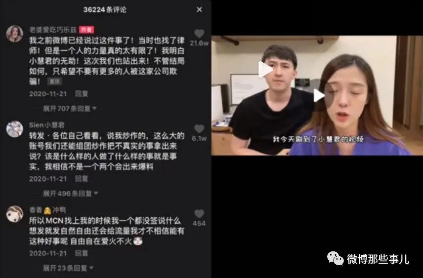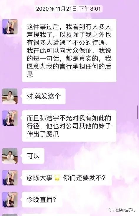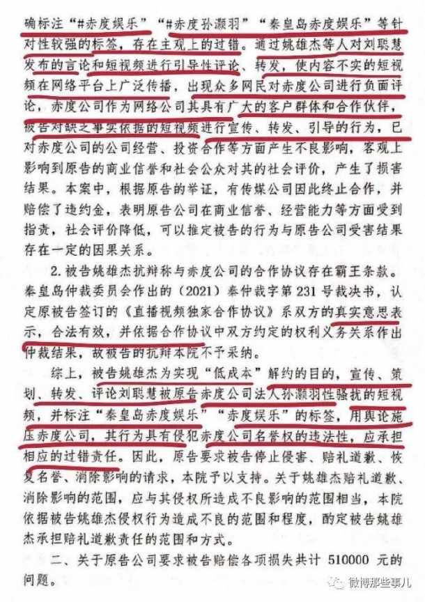 据了解,2020年11月,刘某慧(小慧君)发视频哭诉被MCN公司秦皇岛赤度文化传媒有限公司(以下简称赤度文化公司)总经理孙灏羽性骚扰,并强迫她签订含有霸王条款的合作协议,同时还表示孙灏羽骚扰公司多位女艺人。2年时间涨粉900万。网红夫妇“老婆爱吃巧乐兹”(姚某杰和陈某雨)等多人转发支持。本来已经成功了,公司倒闭了,老板也身败名裂,后来群里有个人反目了,把聊天记录截图放出来了,老板起诉了两年,现在胜诉了。