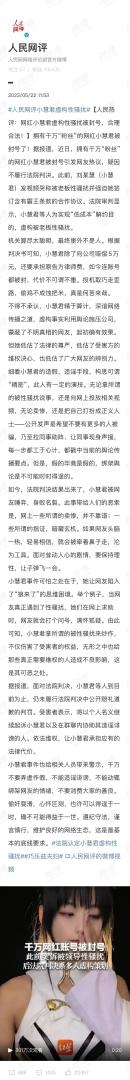 如今“小慧君”都被官媒点名了,“陈大事”还说什么“舆论资本”网红“小慧君”的一句:“女性不会拿自己的清白开玩笑。”不仅拿自己的清白开了玩笑,还拿社会大众的善良开了玩笑。典中典,太6了