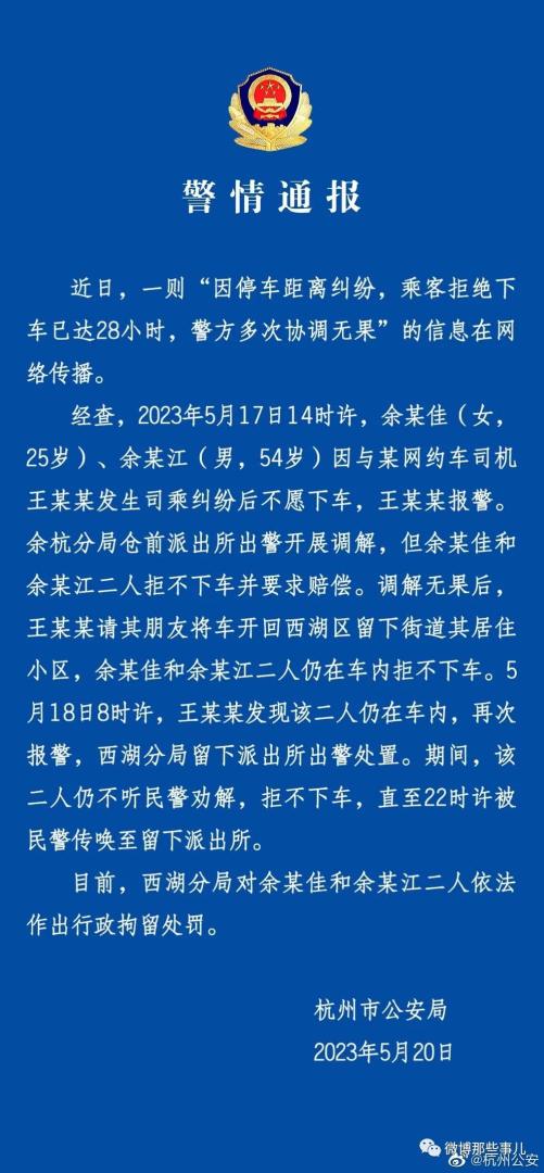 5月17日,浙江杭州一网约车司机称,因乘客选择的上车点开不进去车,自己商议在上车地点20米处等乘客。结果两名乘客上车后大吼大叫,还要求司机赔偿10倍违约金。双方发生冲突后,两名乘客一直拒绝下车,赖在车上超24小时,还尿在了车上。