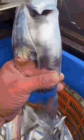 --------------《7》----------------------------《8》--------------刚打捞上来的活带鱼是这样的