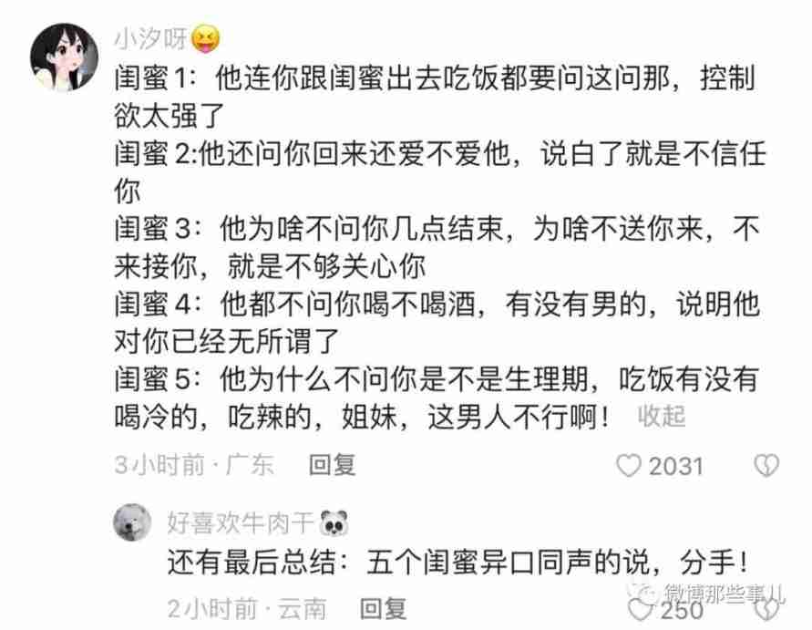 南风惊蛰雨:因为女生和闺蜜说过情感的事情,男生说这些不多,闺蜜共情强而且不喜欢朋友受委屈,兄弟知情少觉得凑合过呗//@Mr霍根:为啥闺蜜都是劝分,哥们儿都是劝和