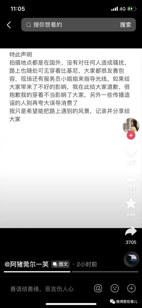 这种事,谈穿衣自由就有点扯了,是性感还是低俗,还是很清楚的该女子在抖音上对此事作出了解释,其最近IP地址显示是在马来西亚和泰国溜达