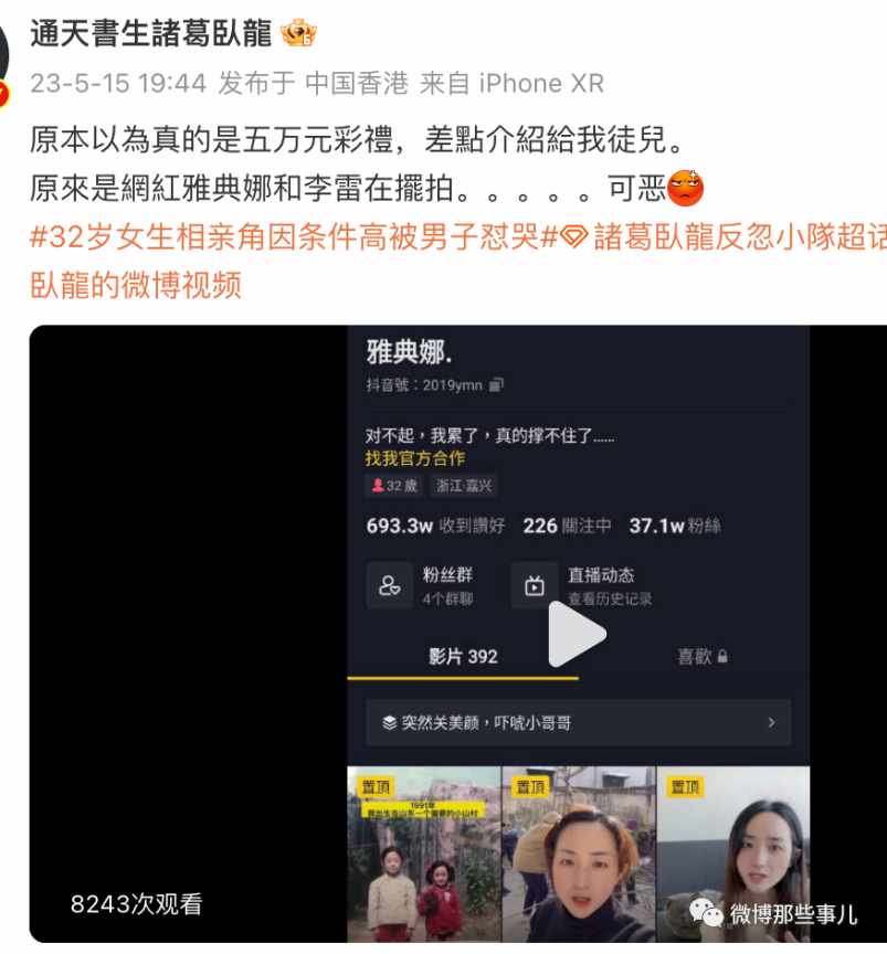 你工资6000怎么有脸要求对方一万?结果几天后的今天,另一个相亲作者雅典娜的话题也上了热搜