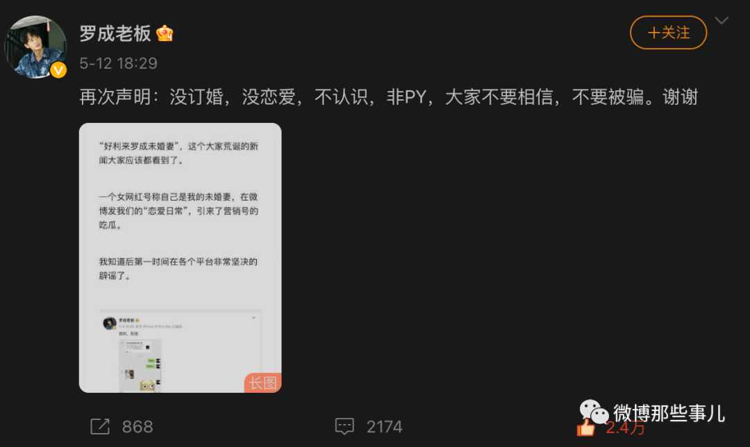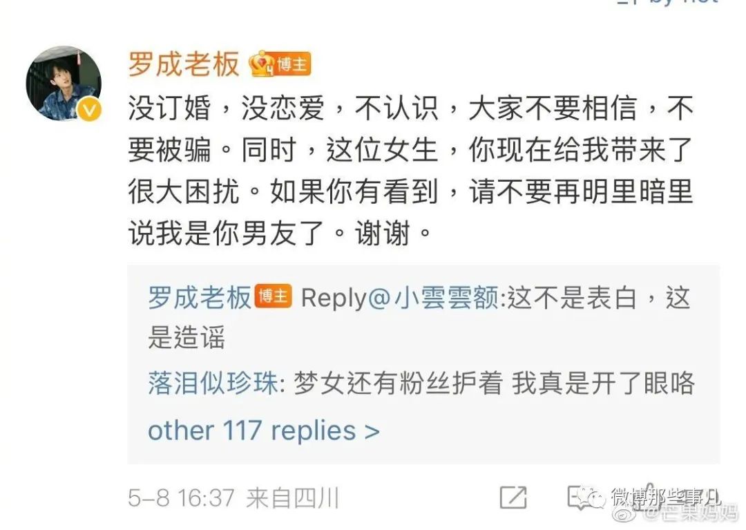 :其实碰瓷罗成还不是最离谱的,最离谱的是利用粉丝的长期信任,一人分饰多角,用玄学进行诈骗,金额很高。并且pua女性,雌竞,贬低粉丝抬高自己。