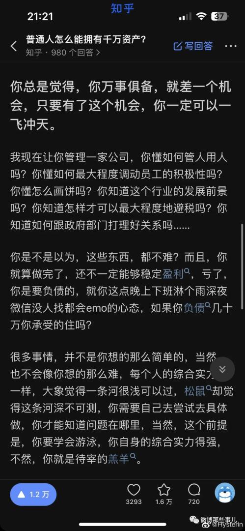:是啊 旁边有个朋友是真觉得他就该成功,能屈能伸 聊什么都能聊的上(不是的聊游戏啊聊吃的这些意思)别人臭脸他也能回场(有利益前提下)休闲时候都在约客户 我看过他约了个客户约了三年 开心的说总算可以有个切入口了 ,真能赚钱的人从不抱怨身旁的不公