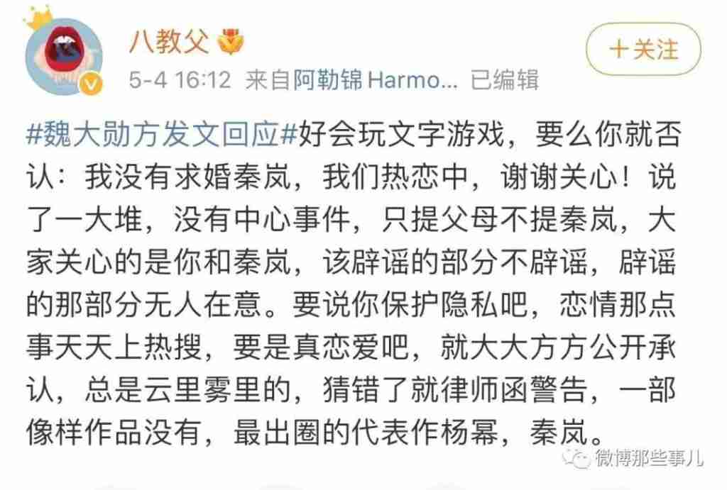 港媒曝魏大勋求婚秦岚被拒,魏大勋回应惹争议,网友:杨幂咋办?