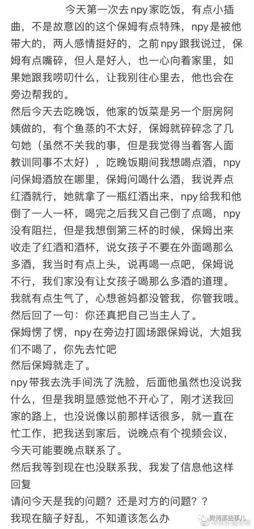 :呃好吧,我觉得女的快跑吧。说实话即使是家里十多年的保姆也要有分寸感啊,又不是男的他妈,保姆也只是保姆而已啊,而且女的也没说错啊,虽然十多年的保姆但是又不是真的是主人,真没见过当保姆反说客人的
