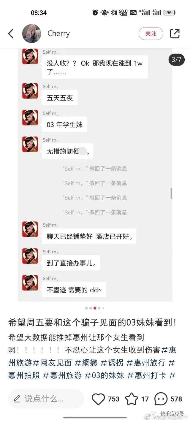 “出一个周五来惠州的03年小妹”,有人1万出售和女网友五天五夜见面机会