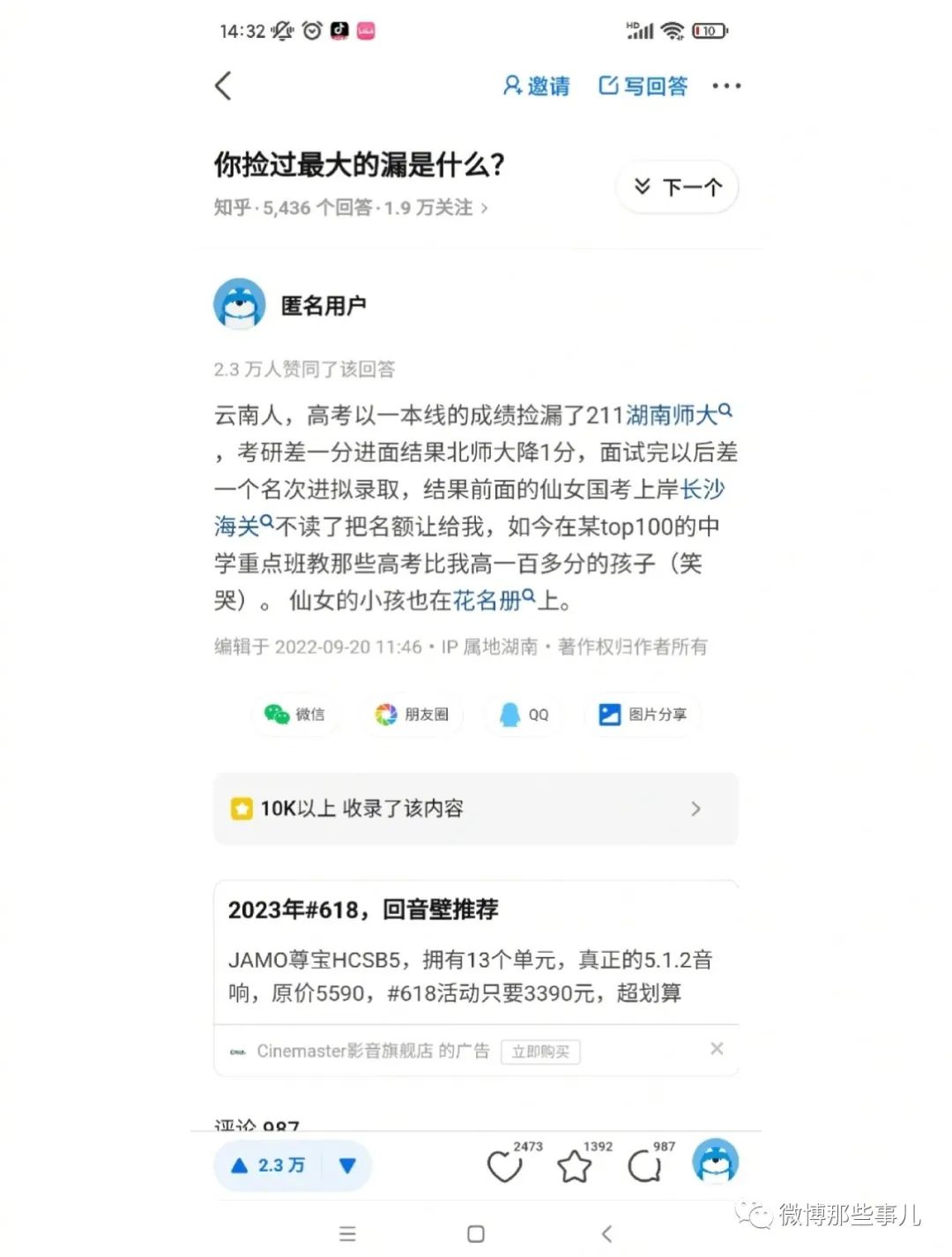 墨叶晨EN:我同学,今年考研,笔试面试最后一名,最后一名进的,我听到了都让她赶紧买彩票。甚至英语只过线一分,作文都没写完,但今年分降了,刚好就超过一分。